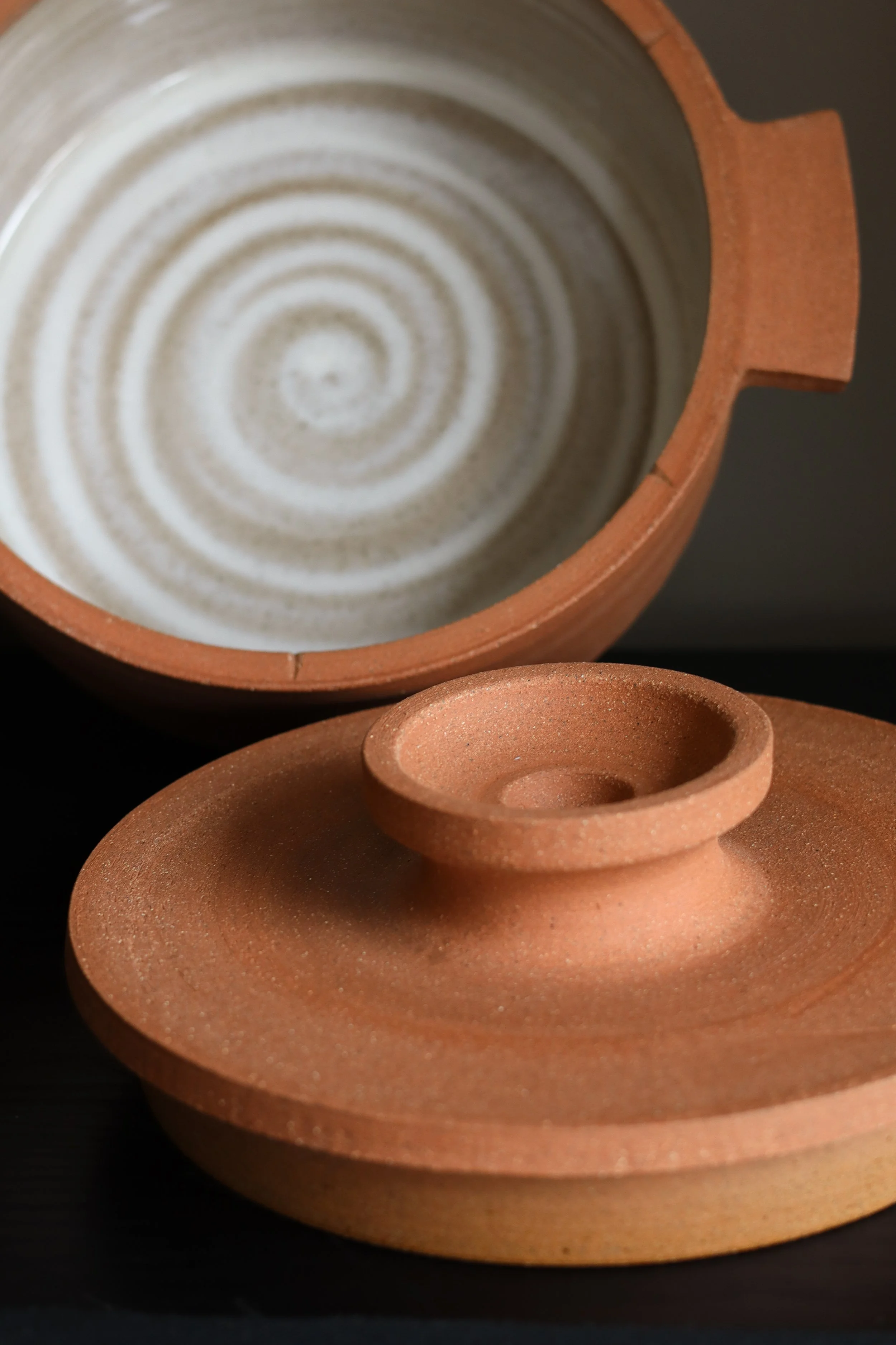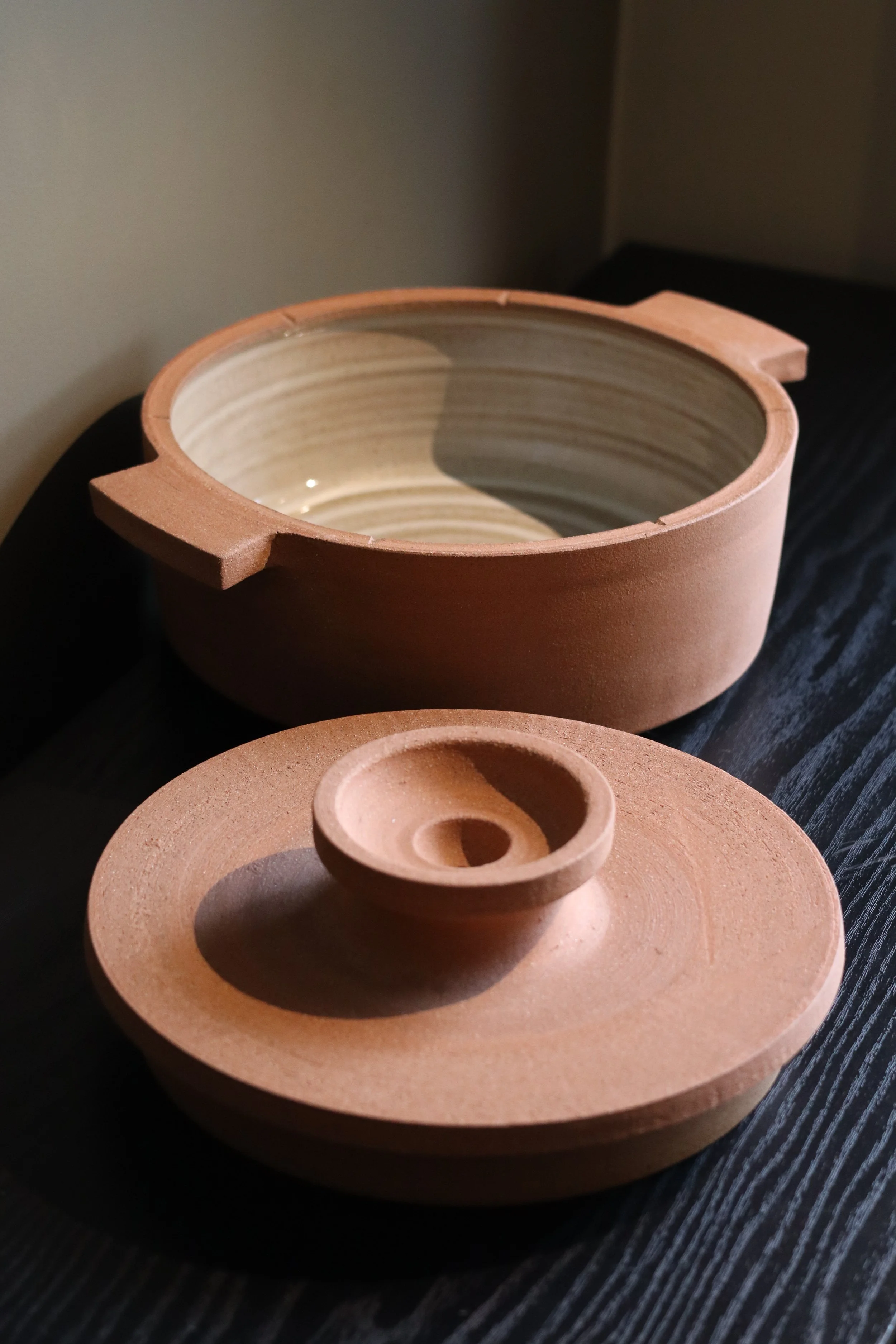 Minimalist and earthy variations on the traditional casserole dish in stunning Dark Red Stoneware. Designed and made to be used as functional dishes from oven to table.